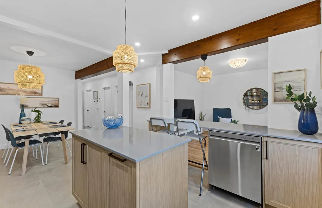 A fully furnished kitchen of this apartment has an oven and a dishwasher. The apartment is 31 minutes' drive from Montreal/St-Hubert airport and around 10 minutes' drive from Central Montreal train station. Enjoy your stay at a patio.